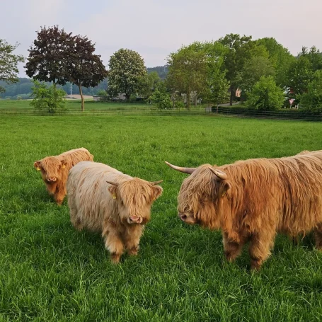 Besuchen Sie einfach eine unserer vielen Rinderweiden in der Gemeinde Bad Essen und überzeugen Sie sich von diesen ruhigen, schönen und typvollen Tieren.